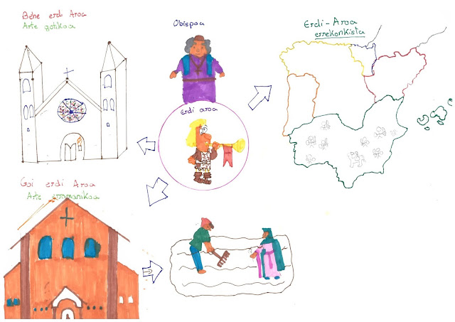 Estamos trabajando la Edad Media y ya algunos alumnos se atreven con sus pequeños trabajos. Es una manera muy interesante de repasar contenidos, primero mientras los hacen y segundo, mientras explican a los compañeros sus propios dibujos. Un saludo.